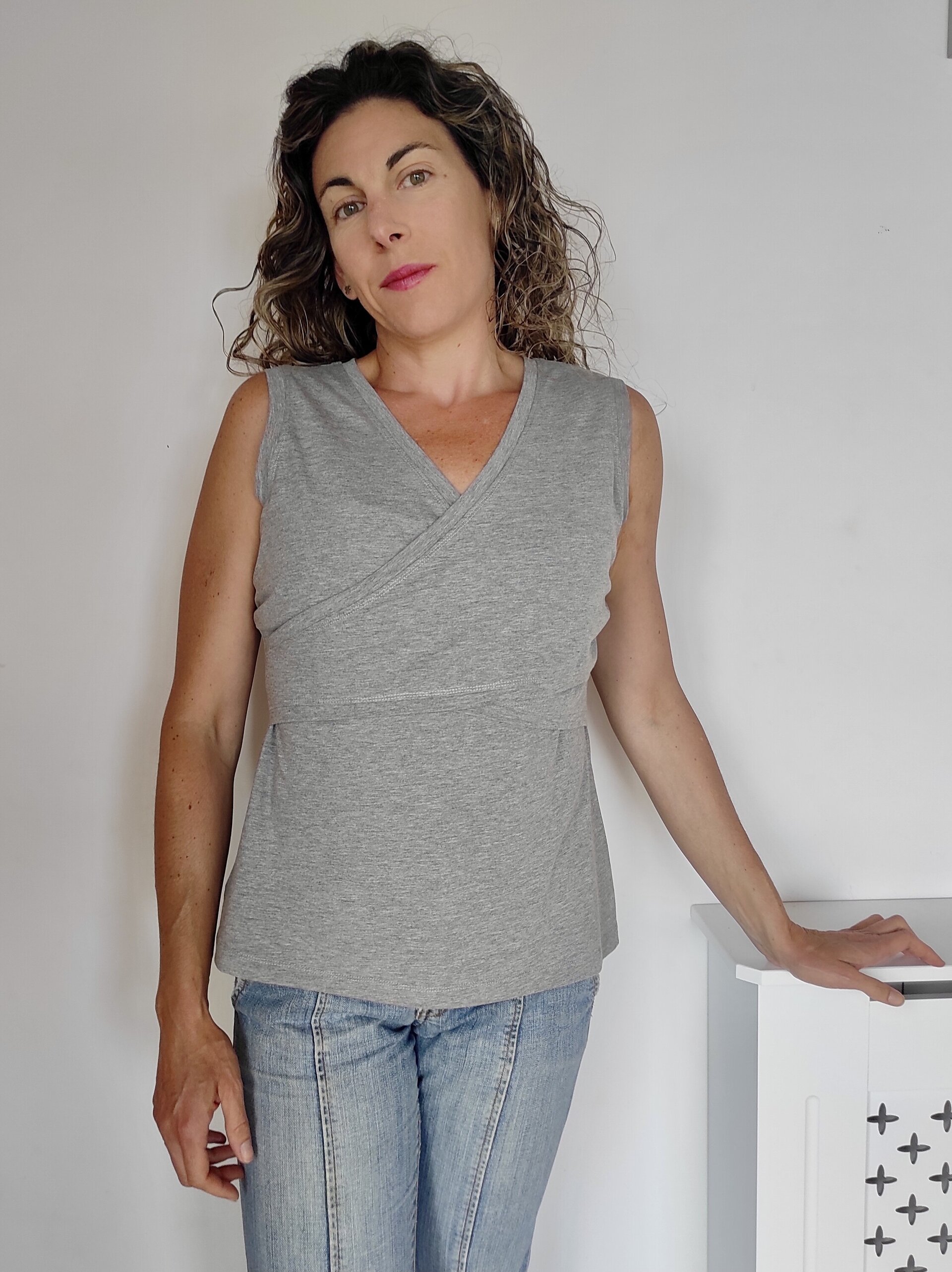 Camiseta de Lactancia - Escote cruzado - Gris Claro